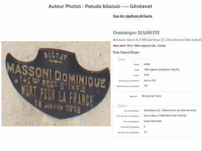 Né en 1896 à Aiacciu il meurt en 1918 à l'âge de 22 ans (Cotes-Du-Nord)